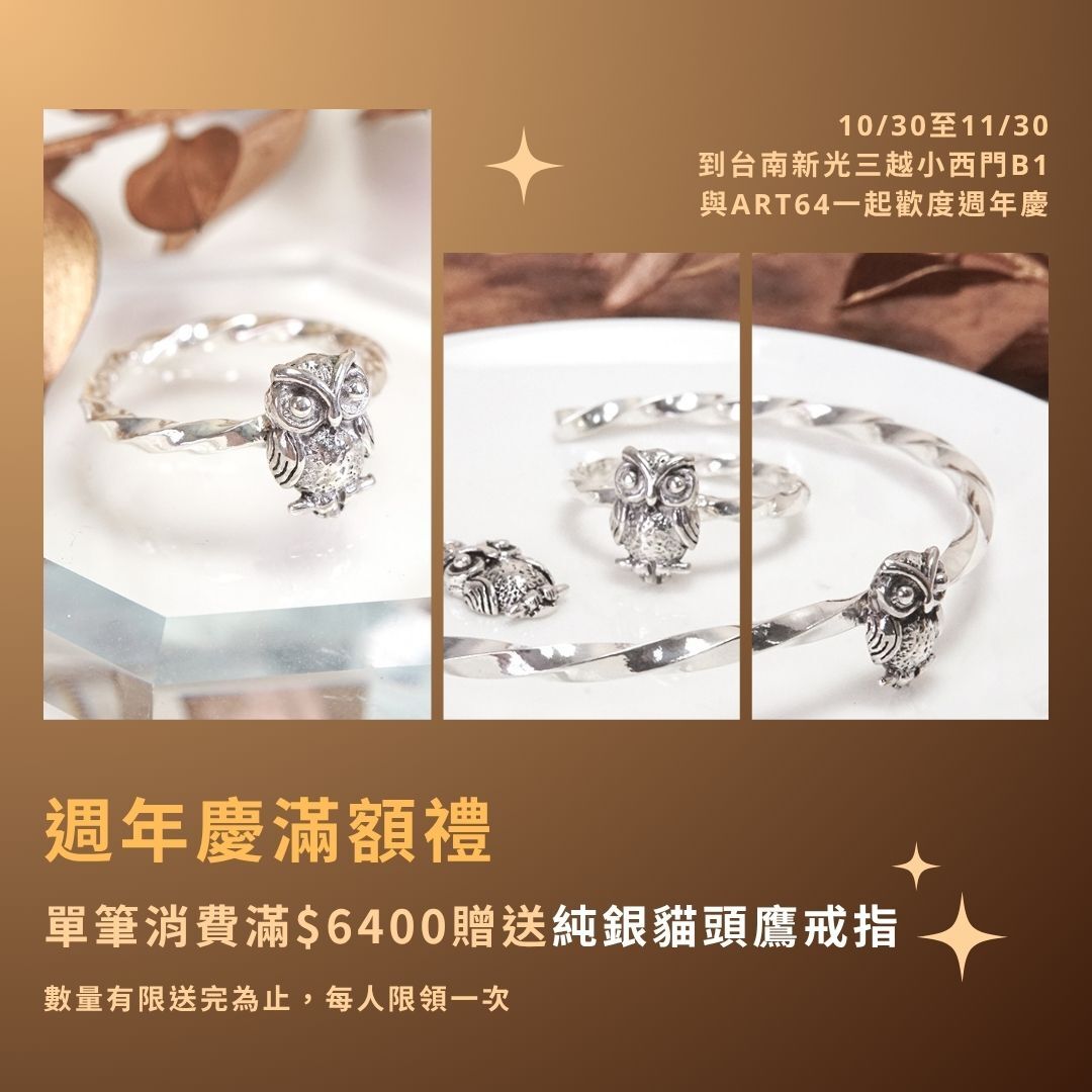 2️⃣單筆滿$6400加贈貓頭鷹銀戒