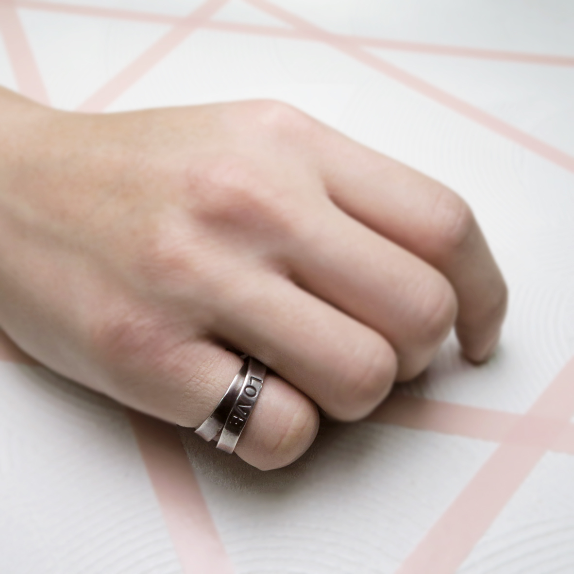 雙戴設計,一只銀戒兩種戴法,搭配獨特文字,創造你的獨特風格