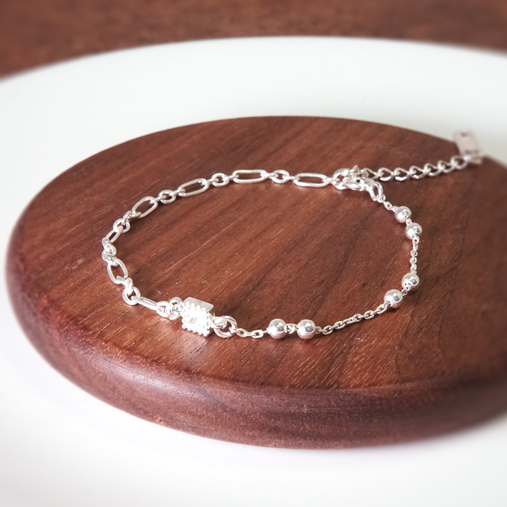 閃耀的方鑽小墜,融合經典費加洛與銀珠設計,將優雅與趣味相互結合,綻放柔美的獨特光芒