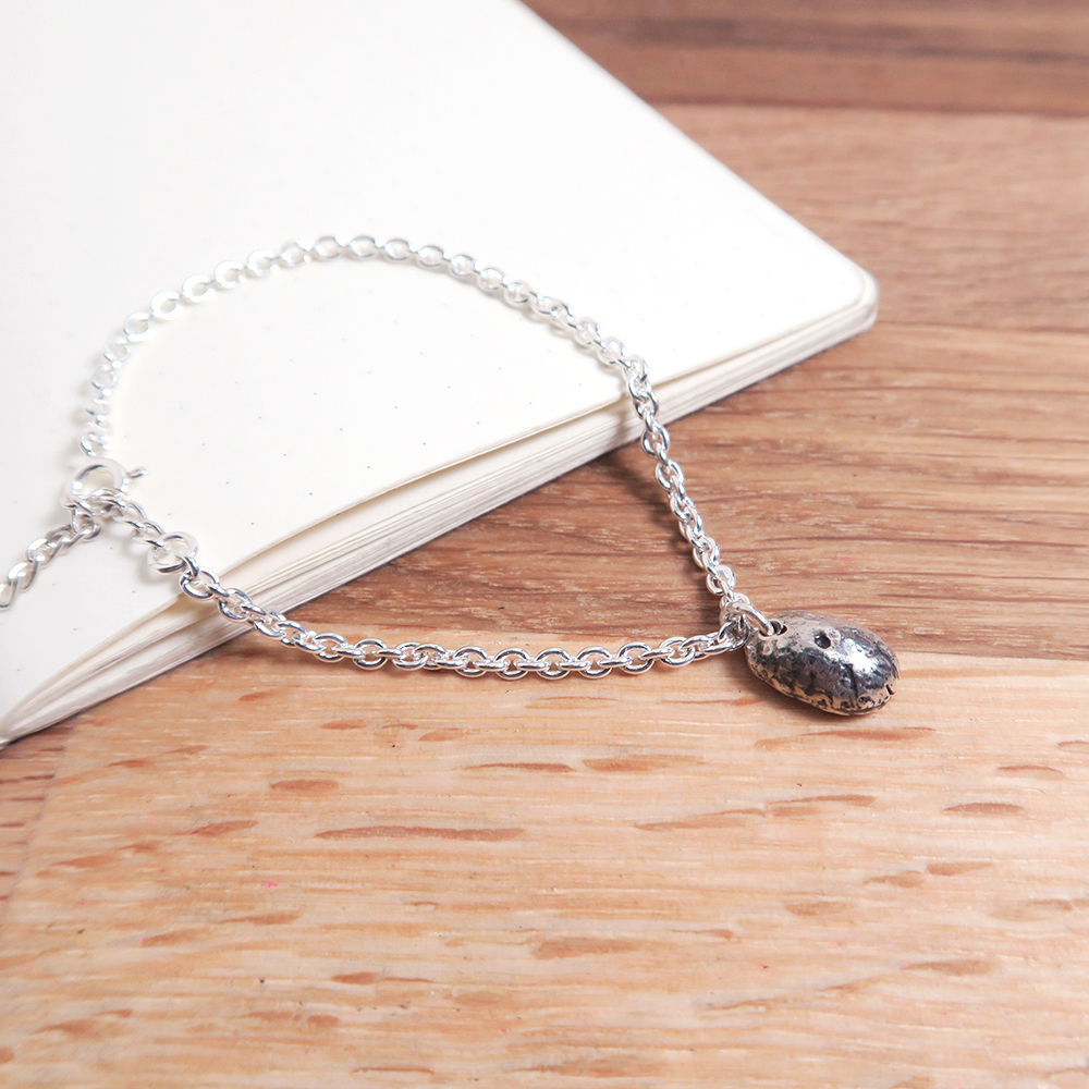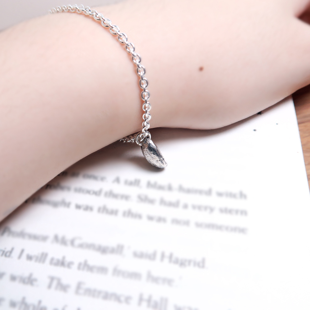 ART64以純銀打造出具有原豆風貌的手感咖啡豆,純銀溫潤的色澤與質地使咖啡豆手鍊別具風味,讓妳時刻品味生活的芳醇。深焙款咖啡豆手鍊特別以手工方式進行染黑處理,使咖啡豆銀墜表面的紋理更加清晰,也創造了銀飾獨有的復古格調。