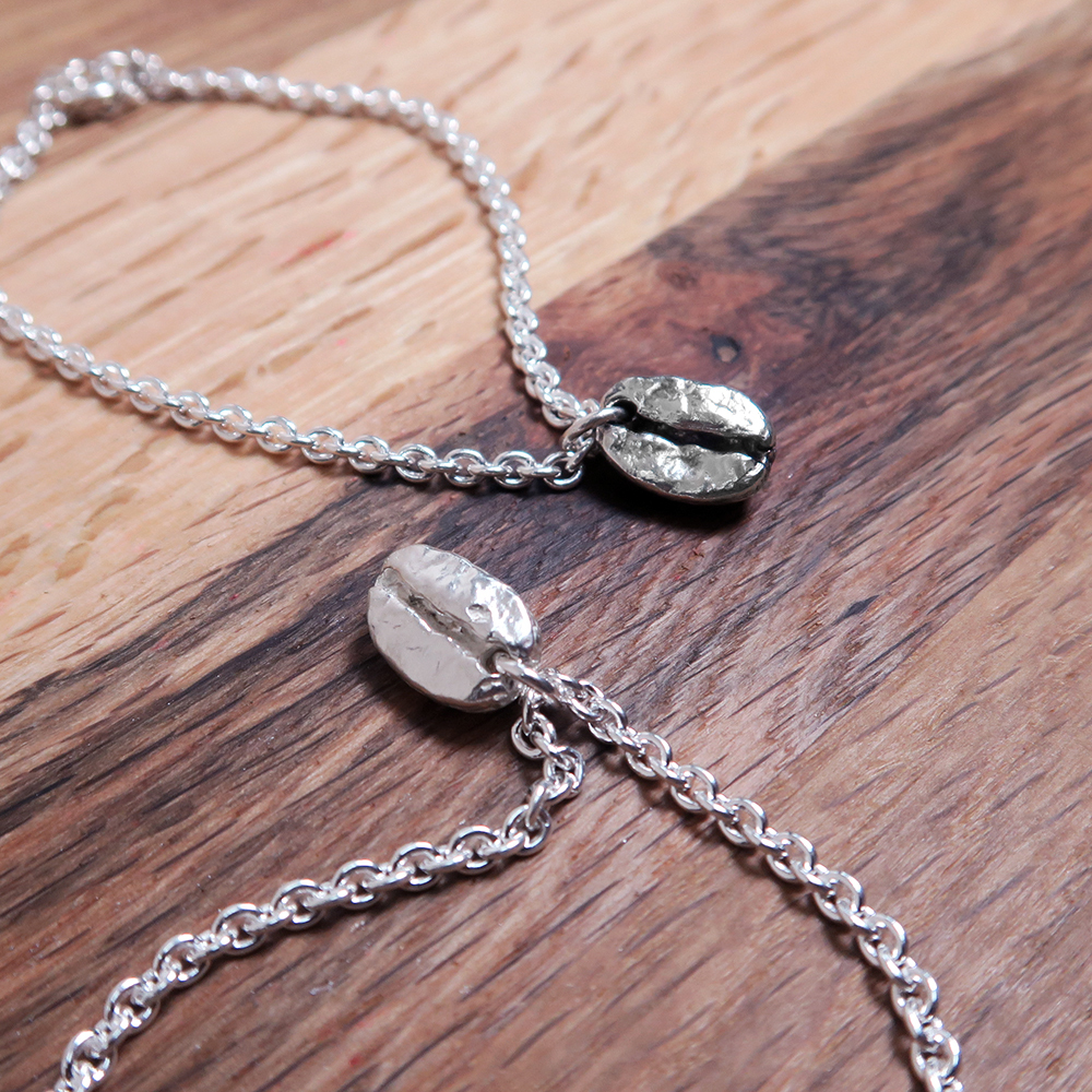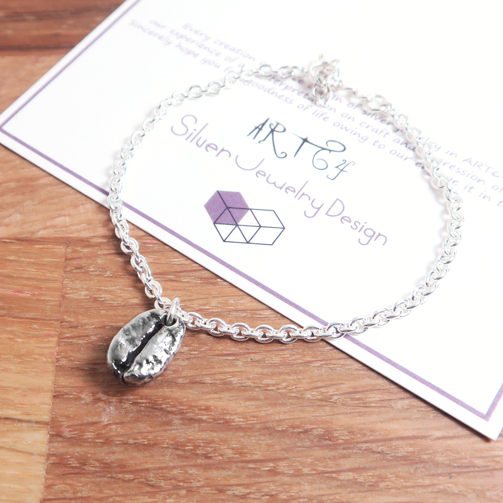 咖啡豆銀墜與手鍊皆使用國際標準925純銀製作