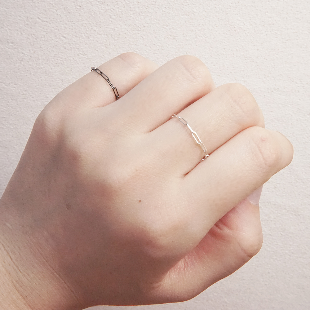 將細緻的銀鍊製作成戒指,可單戴、不同手指配戴多款,亦可將屆鍊與其他戒指疊戴搭配,創造獨一無二的穿搭風格