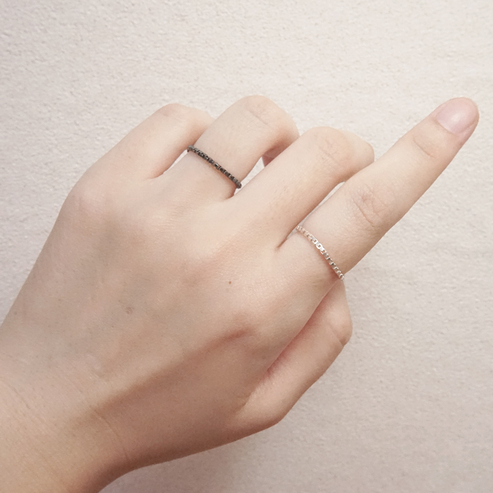 將細緻的銀鍊製作成戒指,可單戴、不同手指配戴多款,亦可將屆鍊與其他戒指疊戴搭配,創造獨一無二的穿搭風格