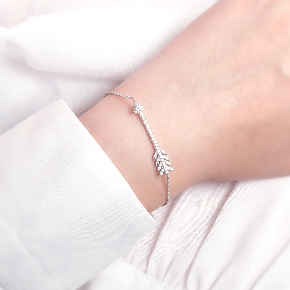 邱比特之箭 美鑽款 925純銀鍍金手鍊 白K金色