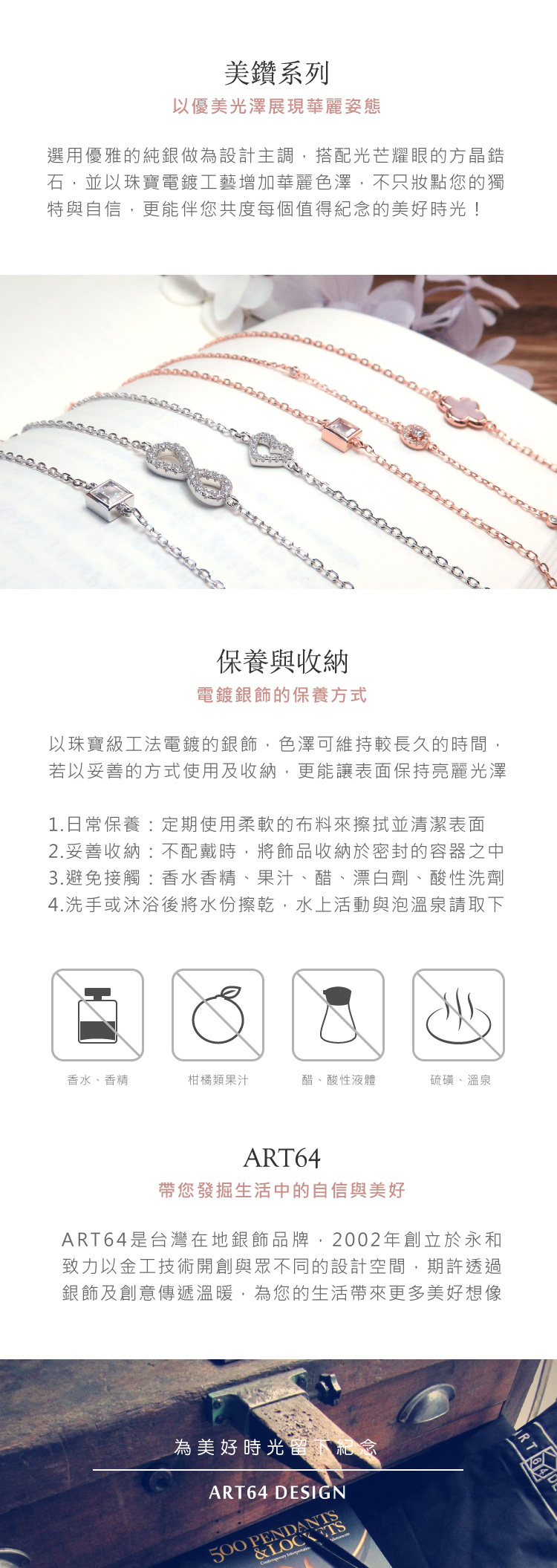選用優雅的純銀做為設計主調,搭配光芒耀眼的方晶鋯石,並以珠寶電鍍工藝增加華麗色澤,不只妝點您的獨特與自信,更能伴您共度每個值得紀念的美好時光!