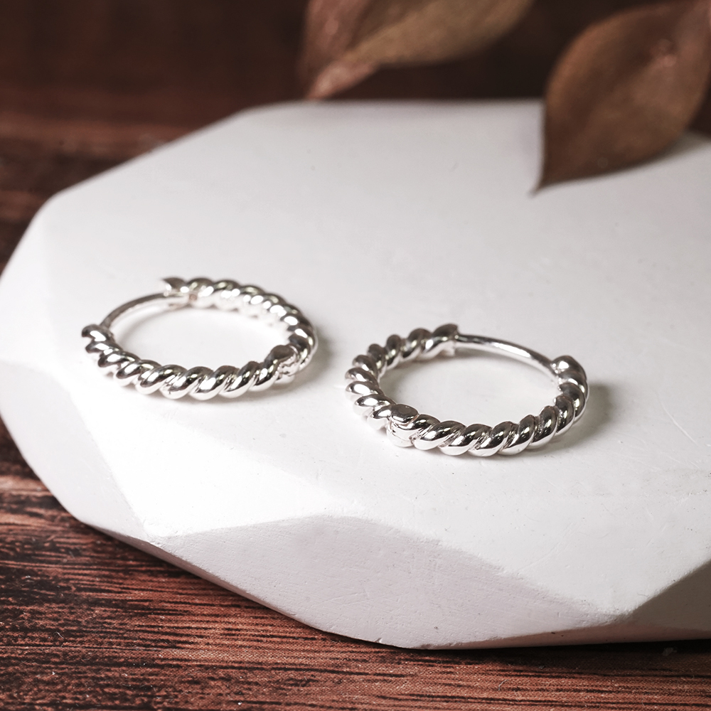 純銀 麻花設計 易扣耳環 925純銀耳環 女生耳環 男生耳環
