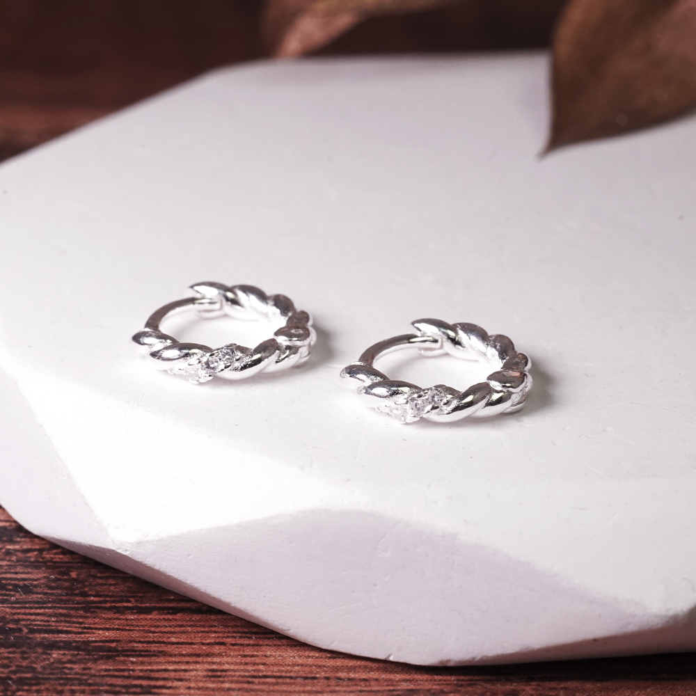 純銀 星綴麻花 易扣耳環 925純銀耳環 女生耳環 耳骨耳環