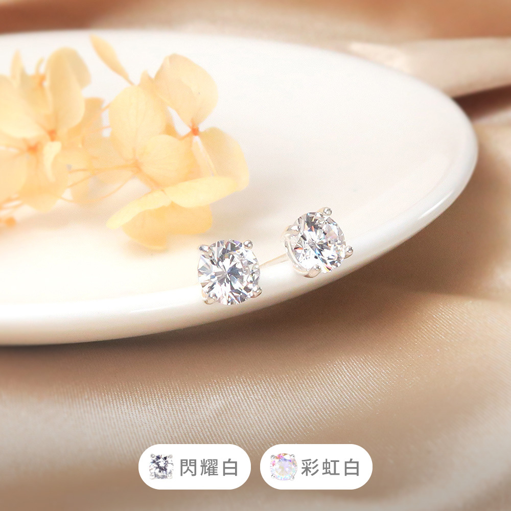 極簡圓形 7mm 單鑽耳環 爪鑲設計 925純銀耳環 必備款 女生耳環