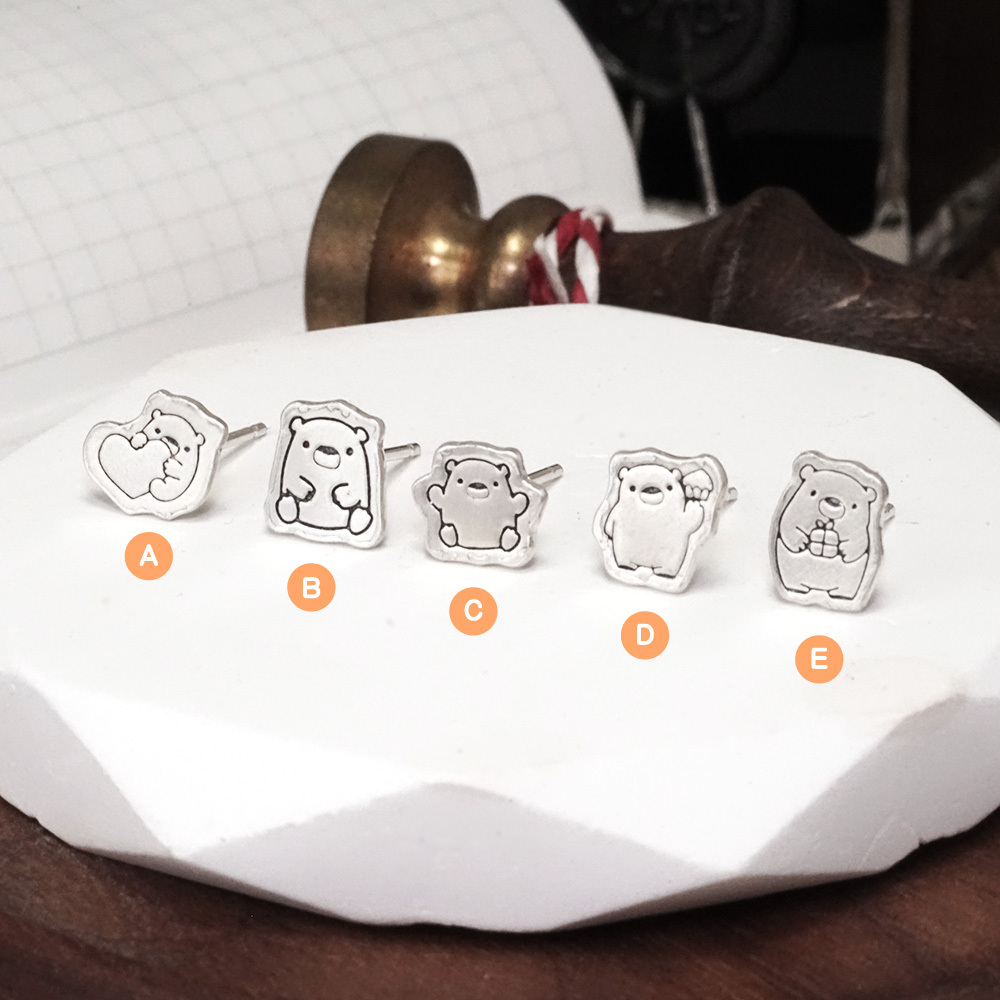 買3送1 塗鴉耳環 快樂熊系列 925純銀 趣味款 手工耳環