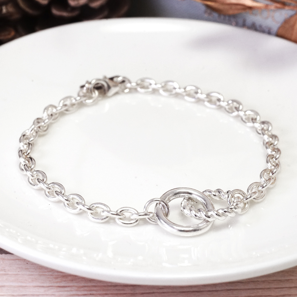捲捲麻花 925純銀手鍊 寬版 男生手鍊 中性手鍊