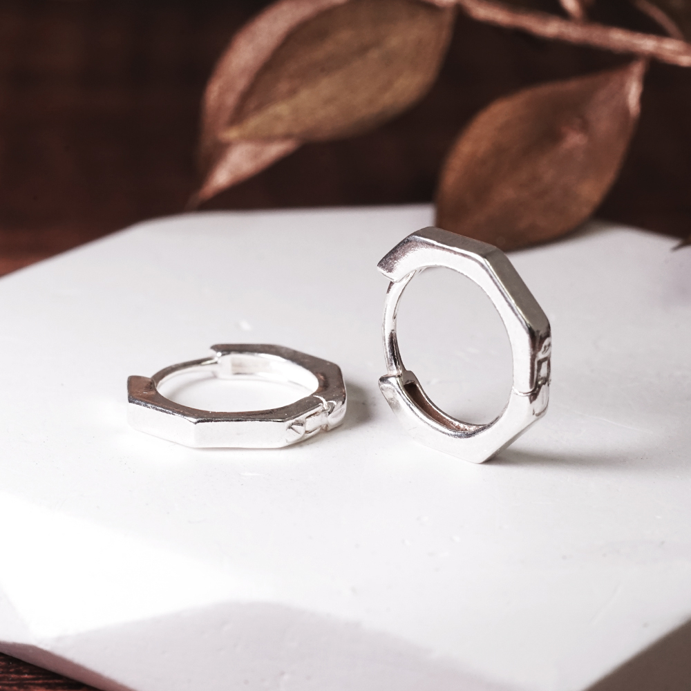 純銀 極簡八角形 易扣耳環 925純銀耳環 女生耳環 男生耳環