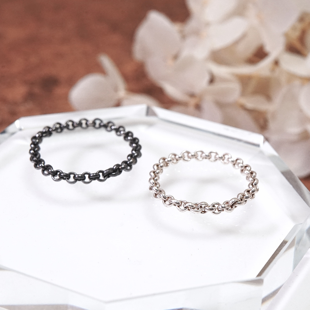將細緻的銀鍊製作成戒指,可單戴、不同手指配戴多款,亦可將屆鍊與其他戒指疊戴搭配,創造獨一無二的穿搭風格