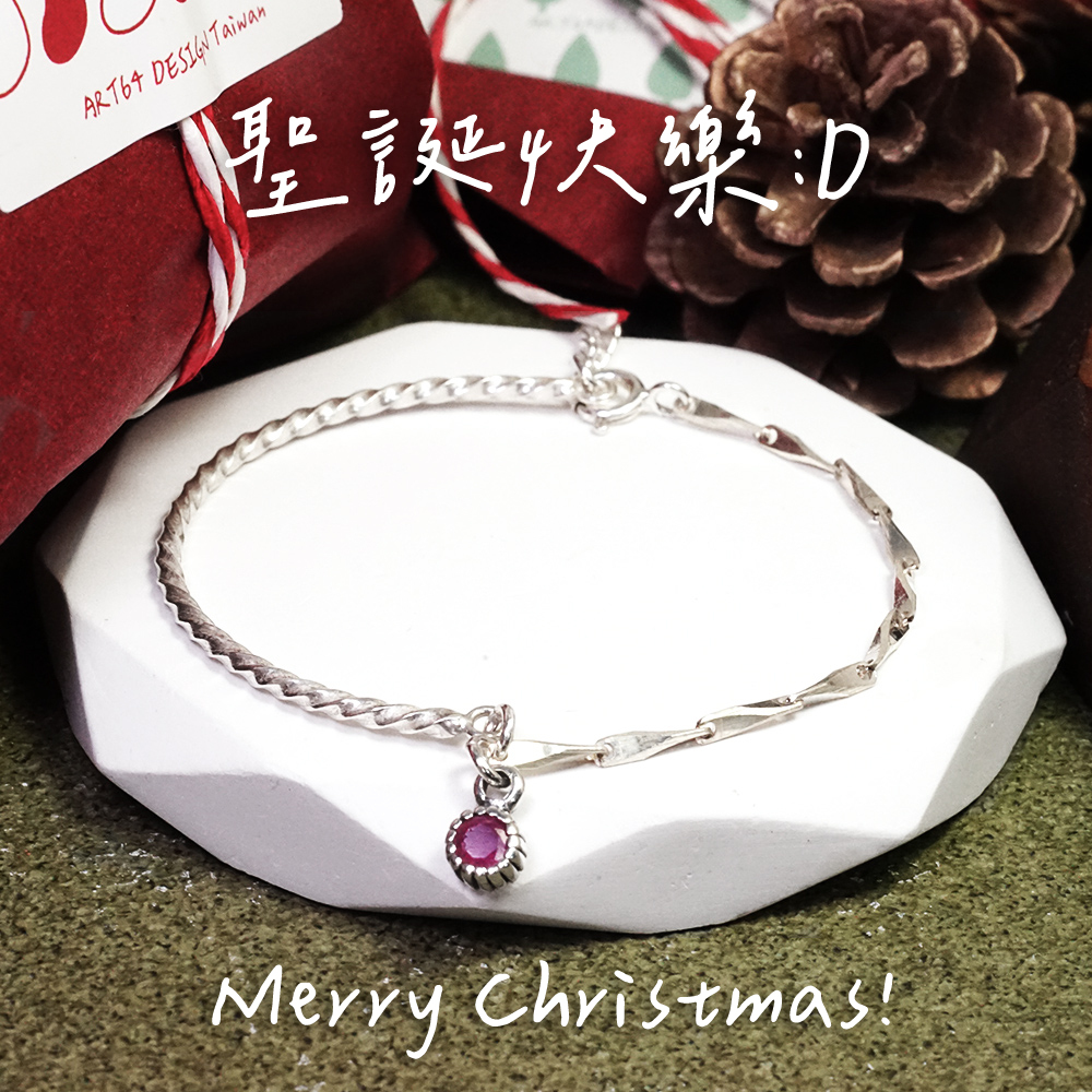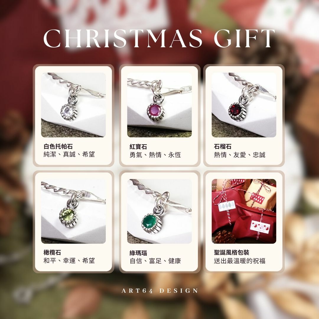 聖誕祝福禮 天然石 半半手鍊 925純銀手鍊 女生手鍊 聖誕禮物 交換禮物
