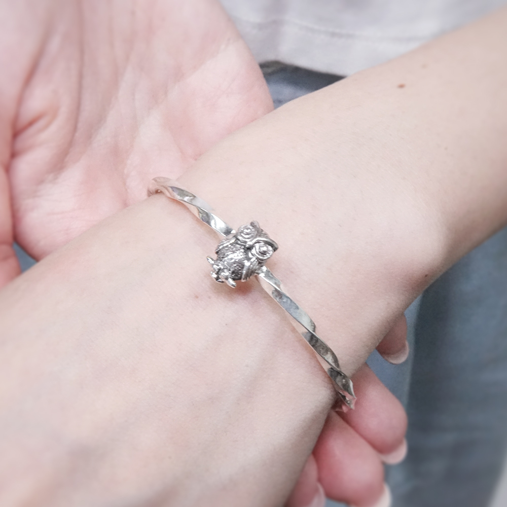 睿智貓頭鷹 方扭設計 925純銀手環 22週年紀念設計 C型手環 開口式 男生手環