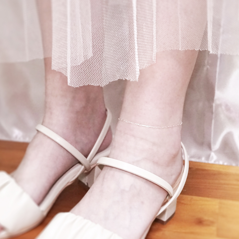 小巧的長方銀圈設計,環環相扣的細緻鍊圈讓光線穿透其中,在腳踝上綻放優雅光澤。極細版簡約設計,低調展現屬於你的獨特風格!