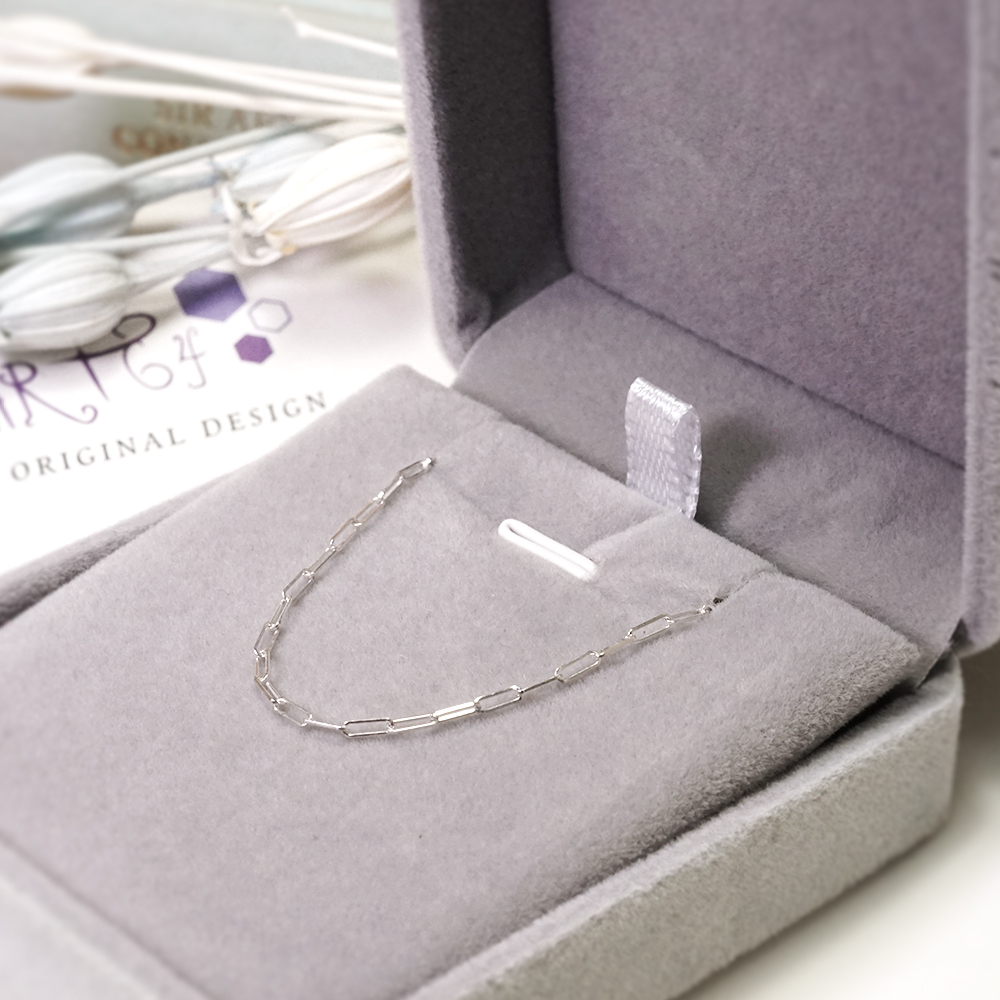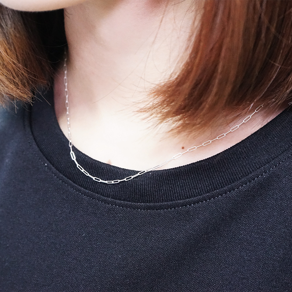 小巧的長方銀圈設計,環環相扣的細緻鍊圈讓光線穿透其中,在頸間綻放優雅光澤。極細版簡約設計,低調展現屬於你的獨特風格!