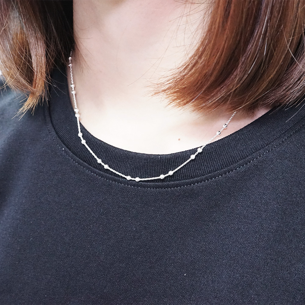 將小巧的銀珠成雙串起,為珠珠項鍊帶來活潑的氣息,隨著光線在頸間舞動,綻放出迷人的優雅光芒!