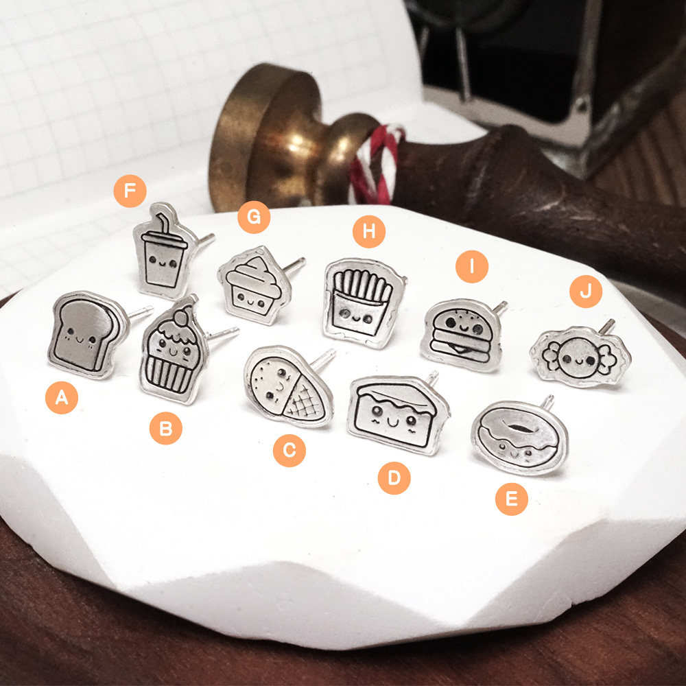 買3送1 塗鴉耳環 點心時間系列 925純銀 趣味款 手工耳環