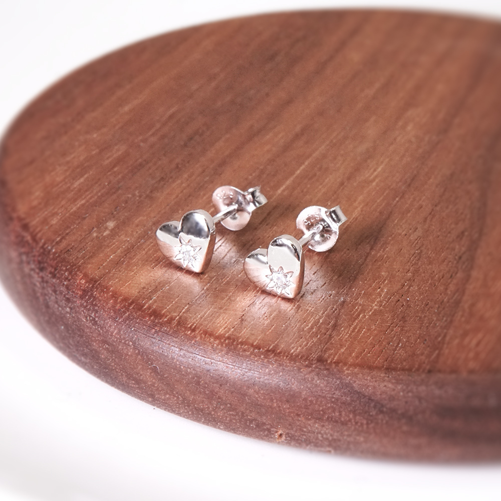 小巧的愛心設計,鑲上耀眼的方晶鋯石,讓動人光芒在心中隨時閃耀