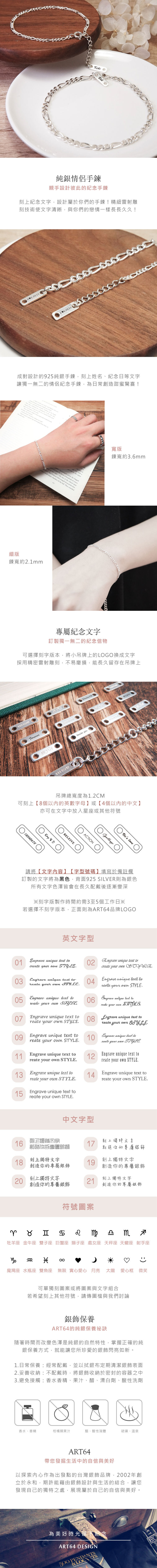 成對設計的925純銀手鍊,低調素雅,是專屬兩人的獨特紀念。可刻上姓名、紀念日等文字,讓獨一無二的情侶手鍊為日常創造甜蜜驚喜!