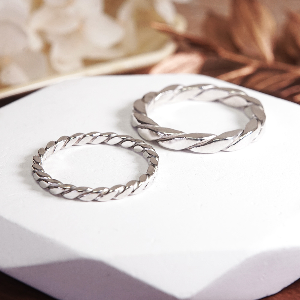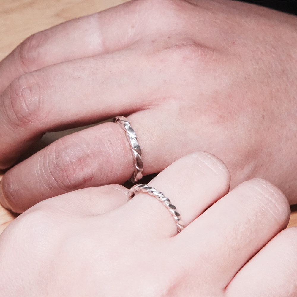 為低調情侶設計的極簡情侶對戒,以麻花造型象徵兩人之間的連結,藉由相連的方晶意象,讓彼此的心緊密相依
