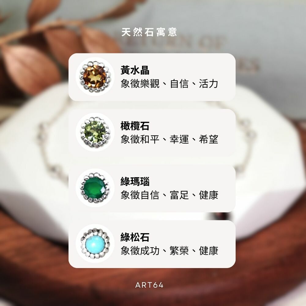 以天然礦石與優雅純銀交織而成的祝福銀飾,小巧的守護石閃耀著柔和光芒,以美好的象徵帶來溫暖支持,陪伴每個人創造屬於自己的獨特人生。