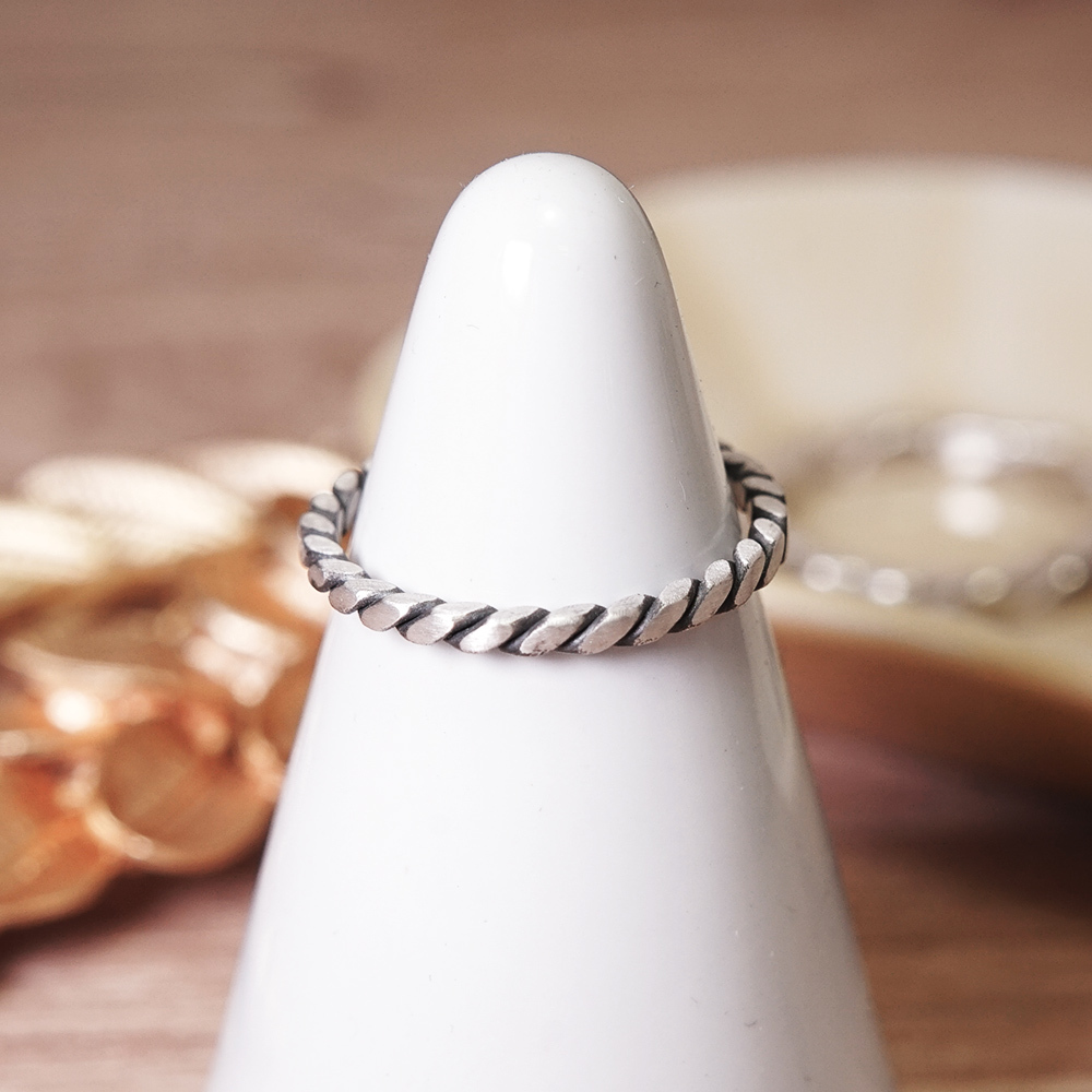 方晶格 細麻花戒 霧黑 925純銀戒指 女生戒指 男生戒指 尾戒