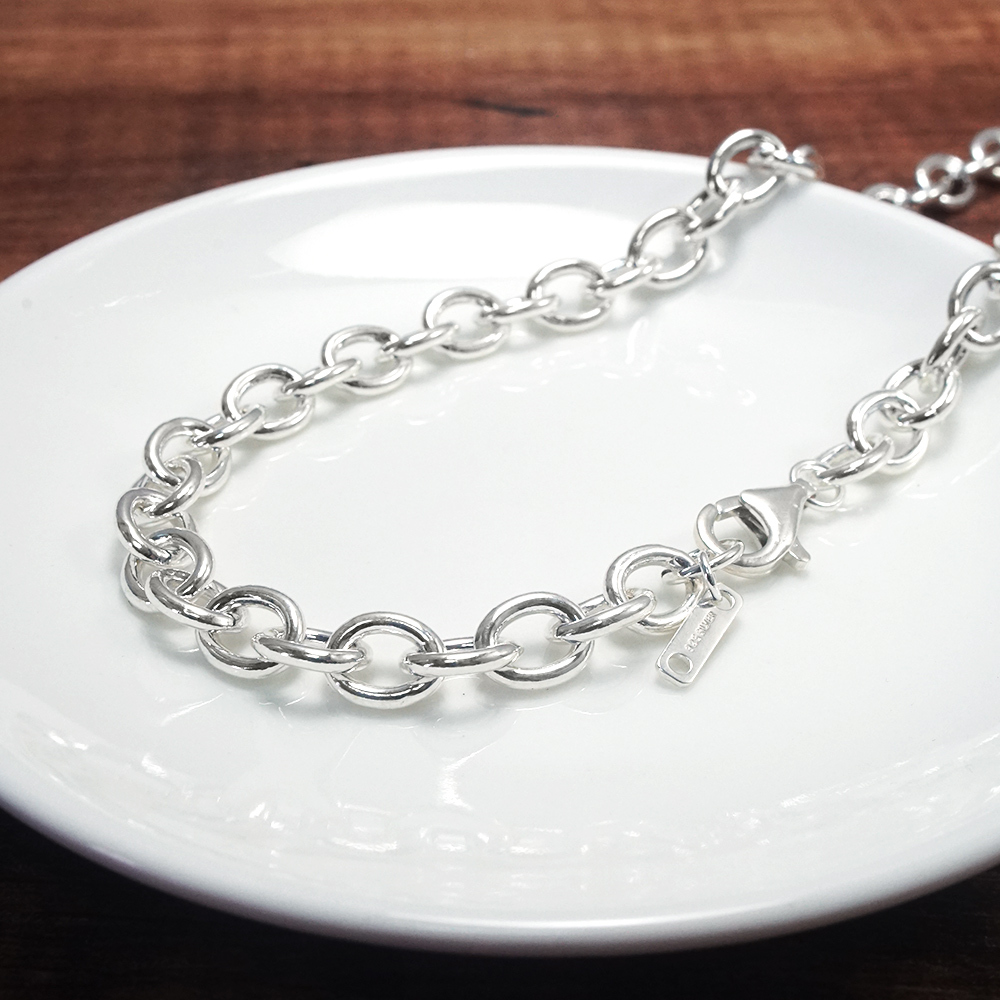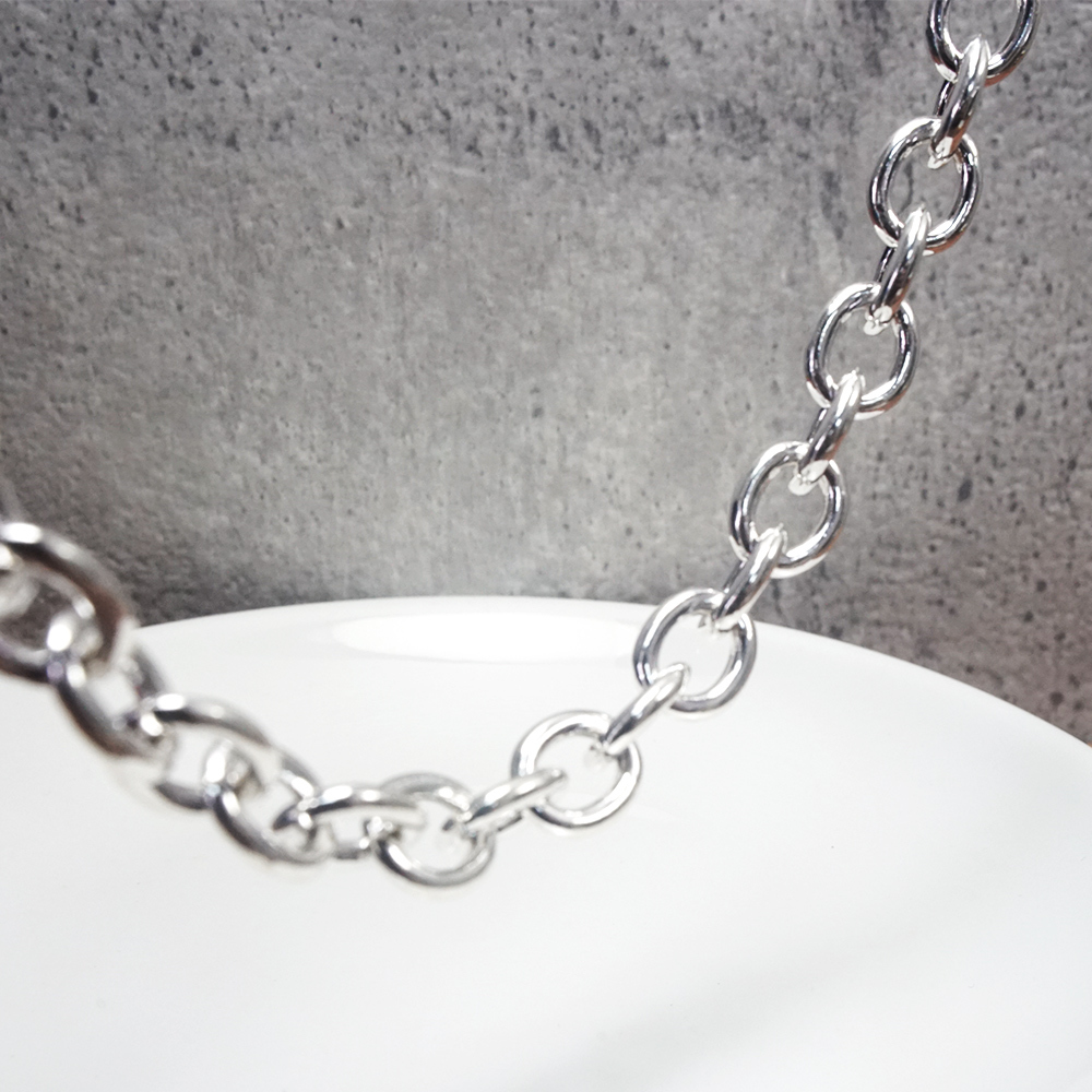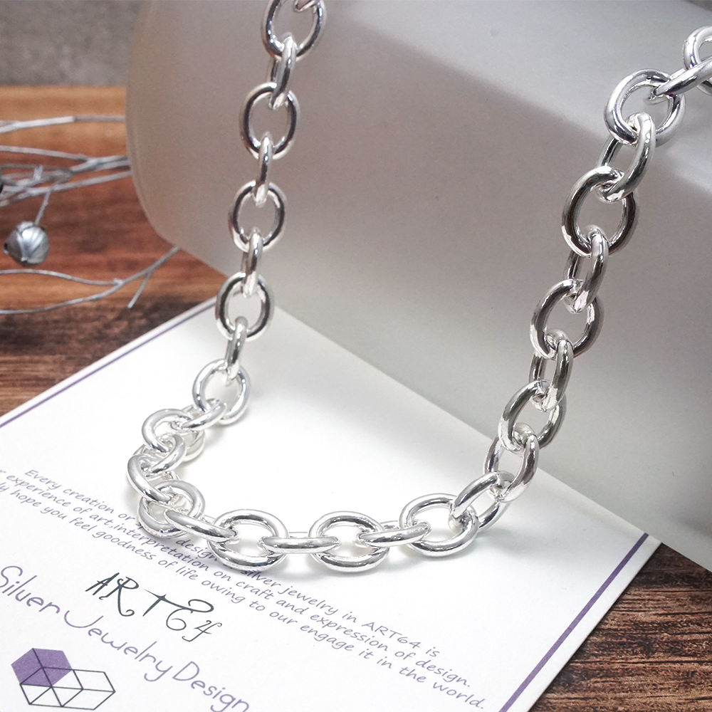 由樣式簡單的銀圈構成,樸實大方的圓圈鍊是銀鍊中的經典款式,恰到好處的純粹外型能充分彰顯墜飾特色,溫潤的光澤更展現成熟穩重的氣息,為你添上與眾不同的獨特風格。