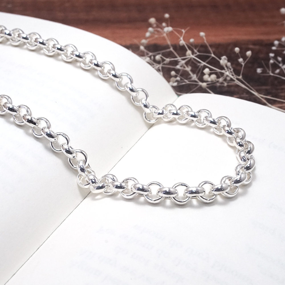 小圓鍊是銀鍊中的經典款式,由厚實的弧形銀圈構成,緊密的結構使小圓鍊擁有渾厚飽滿的立體感,鍊圈圓弧狀的設計也讓整體光澤更為沉著、內斂,散發成熟大方的穩重氣質。