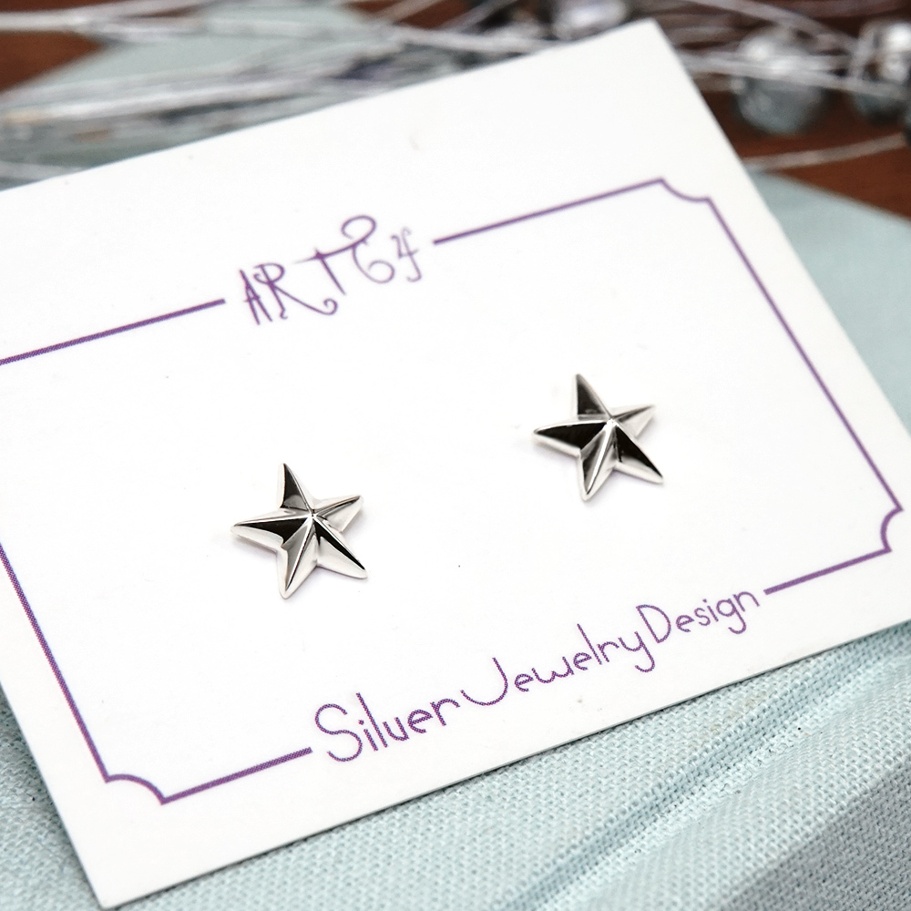 榮耀勳章 星星鉚釘 925純銀 針式耳環